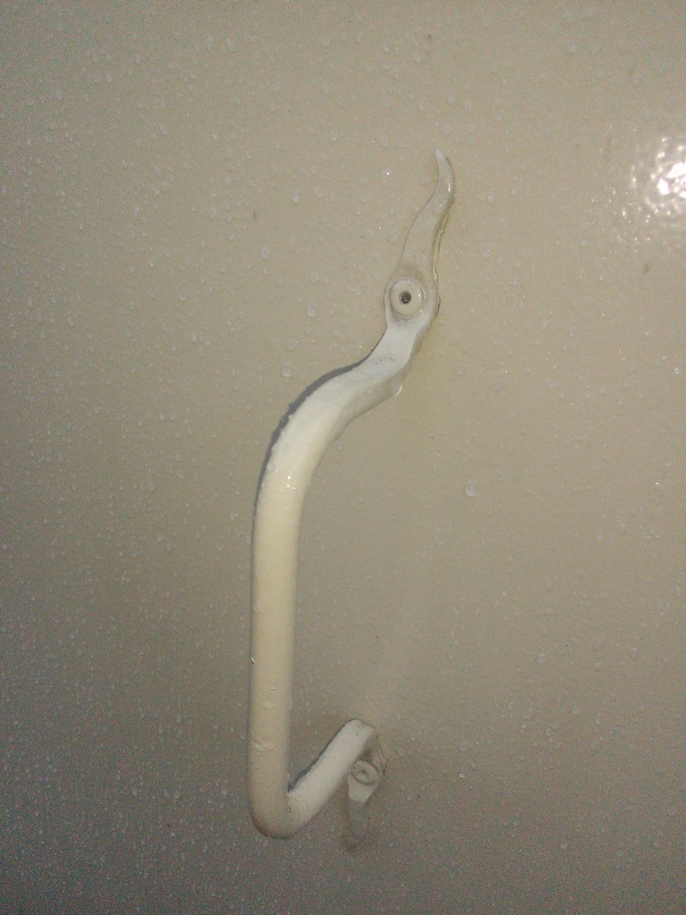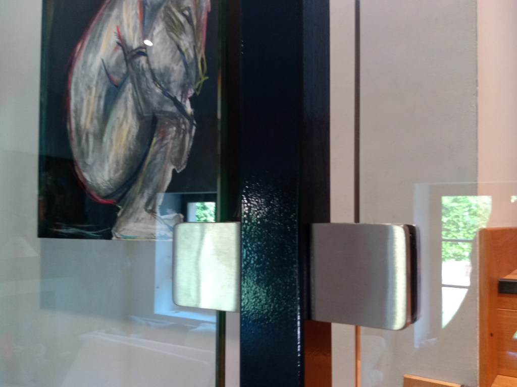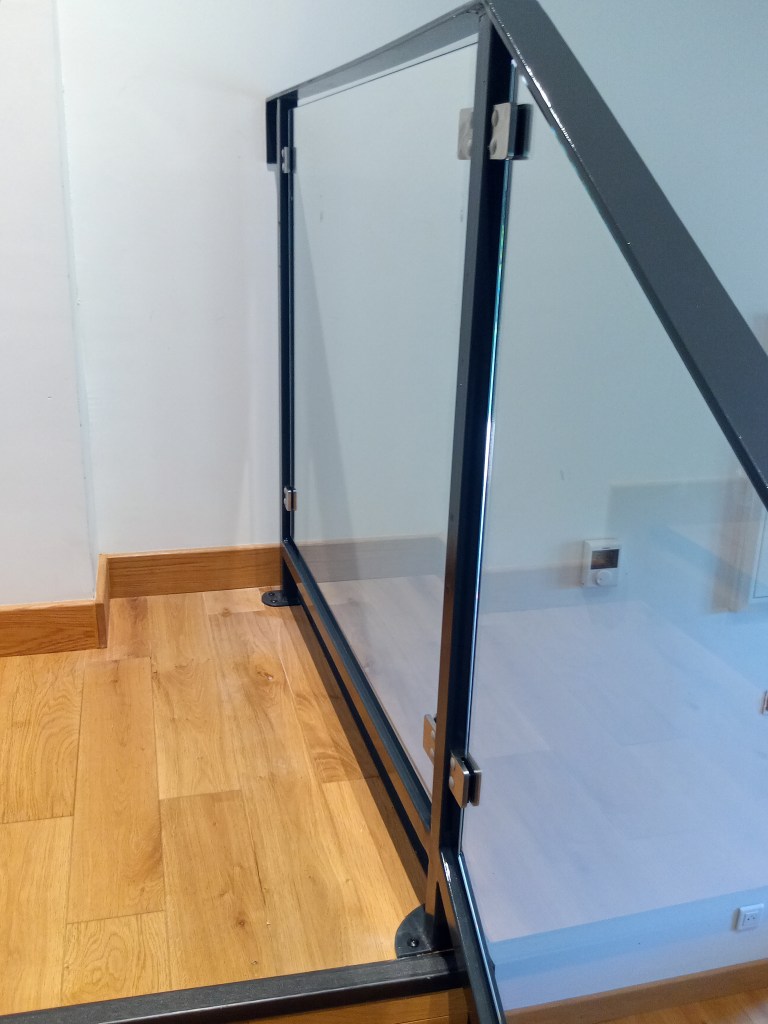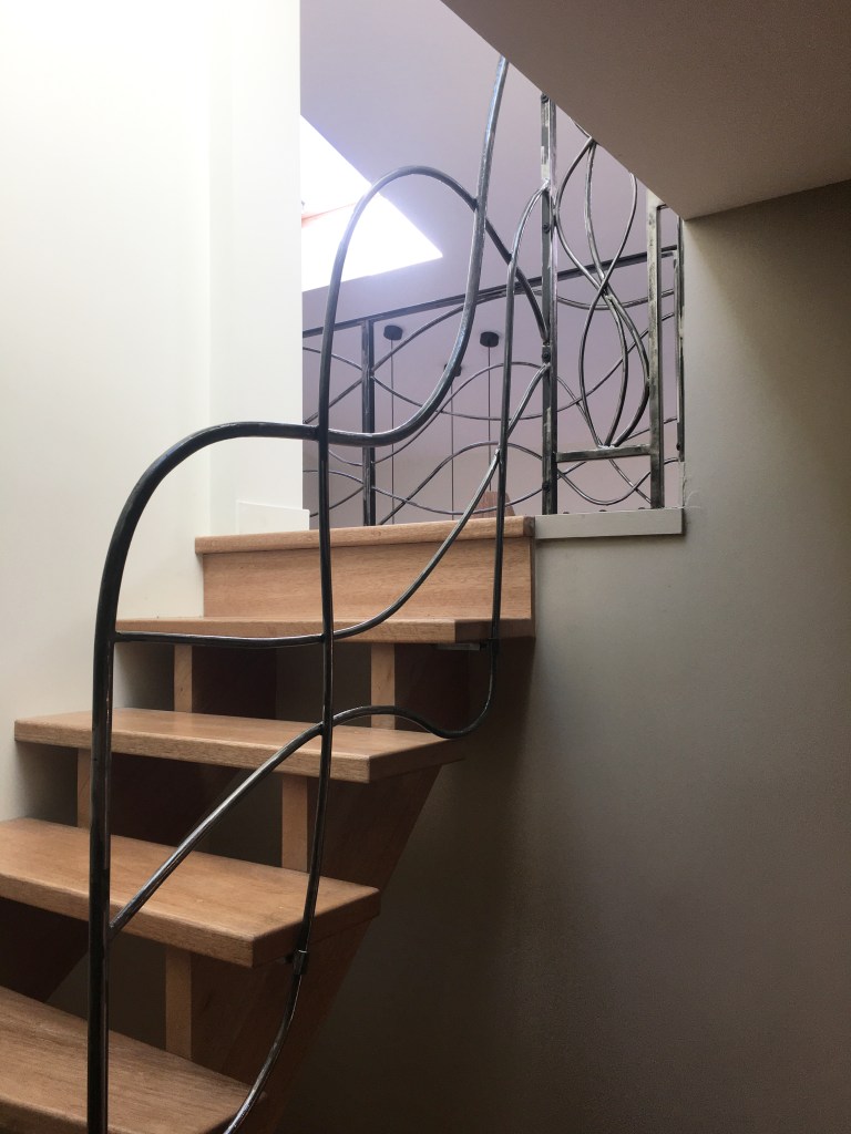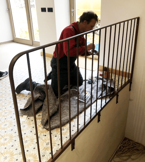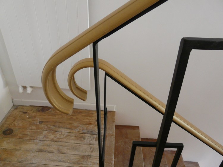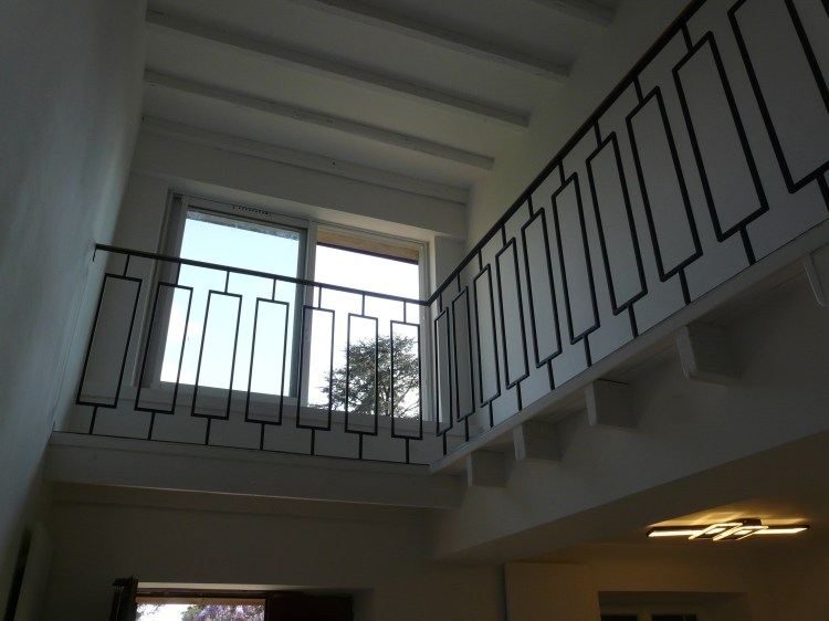 Une rambarde simple, à l’intérieur, finition thermolaquage effet rouille.
