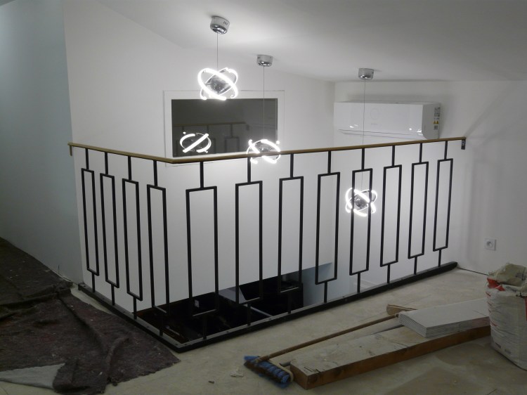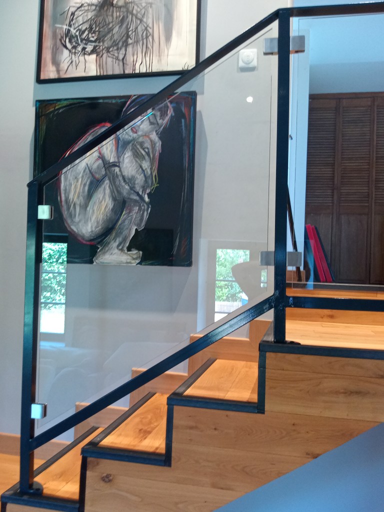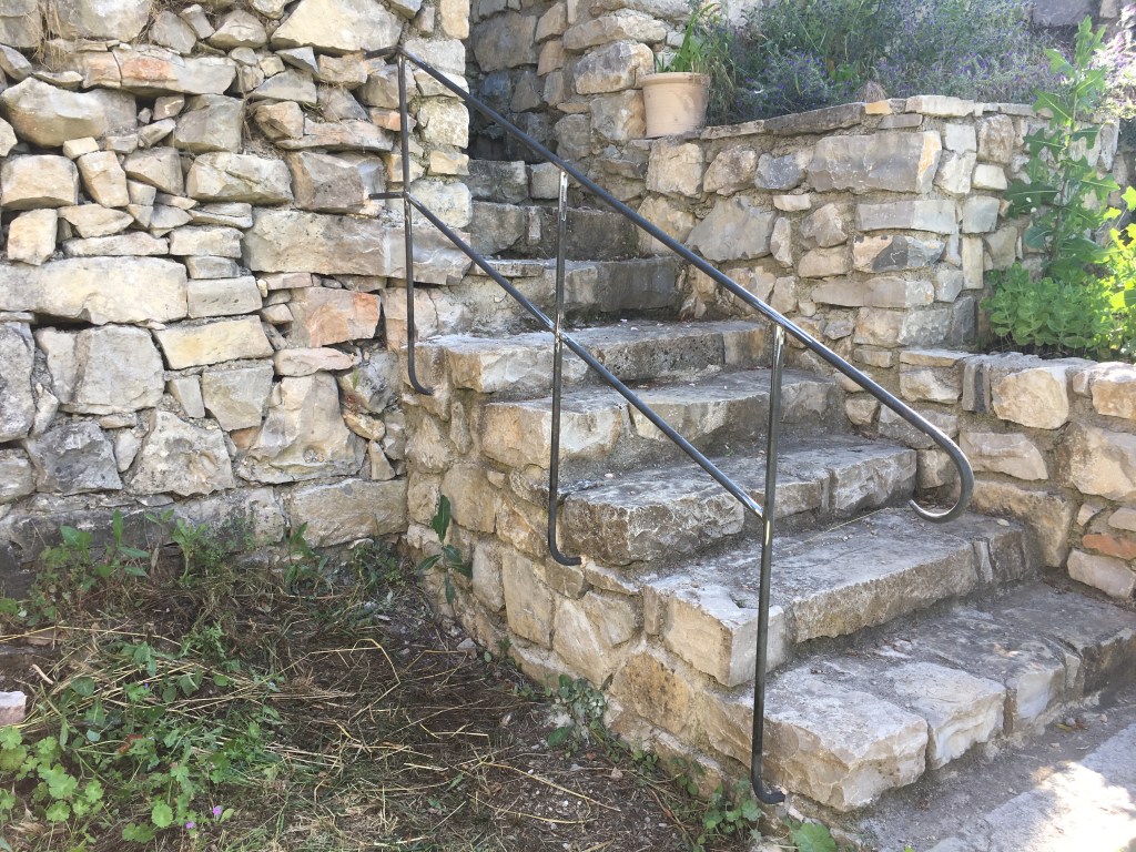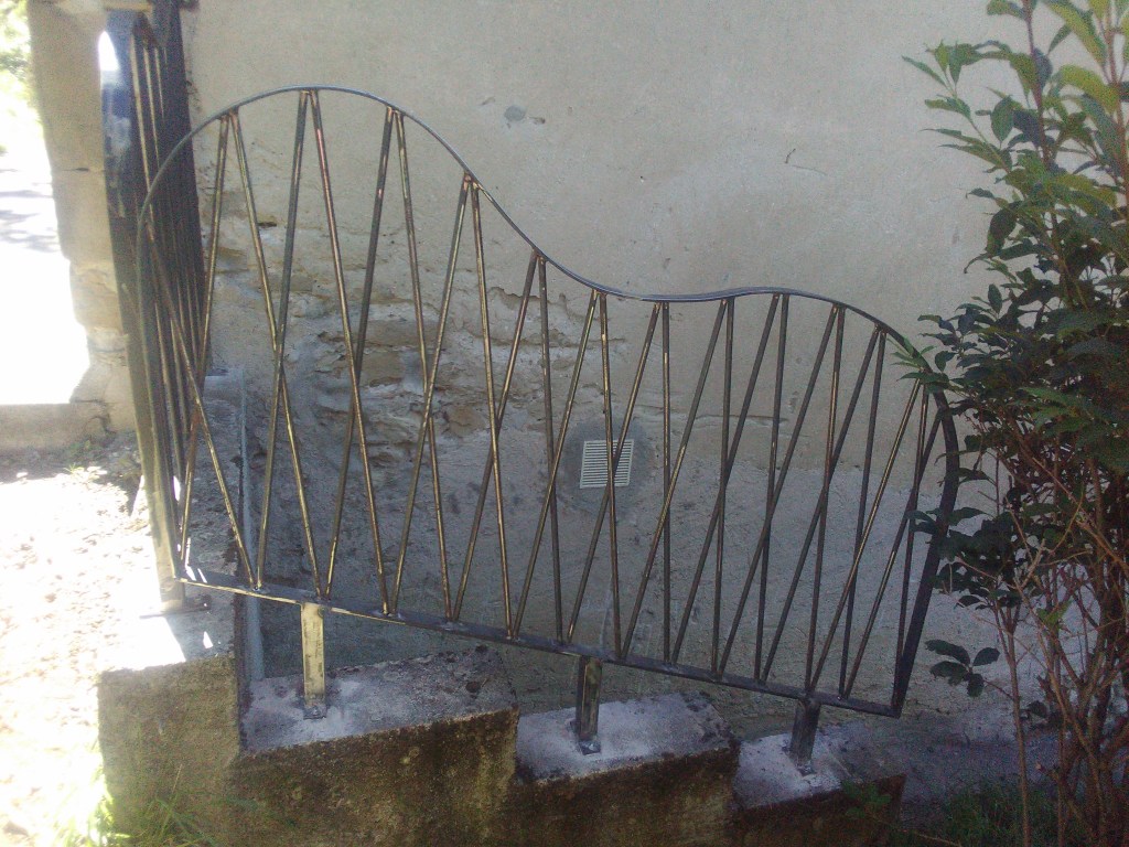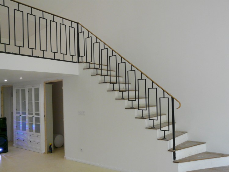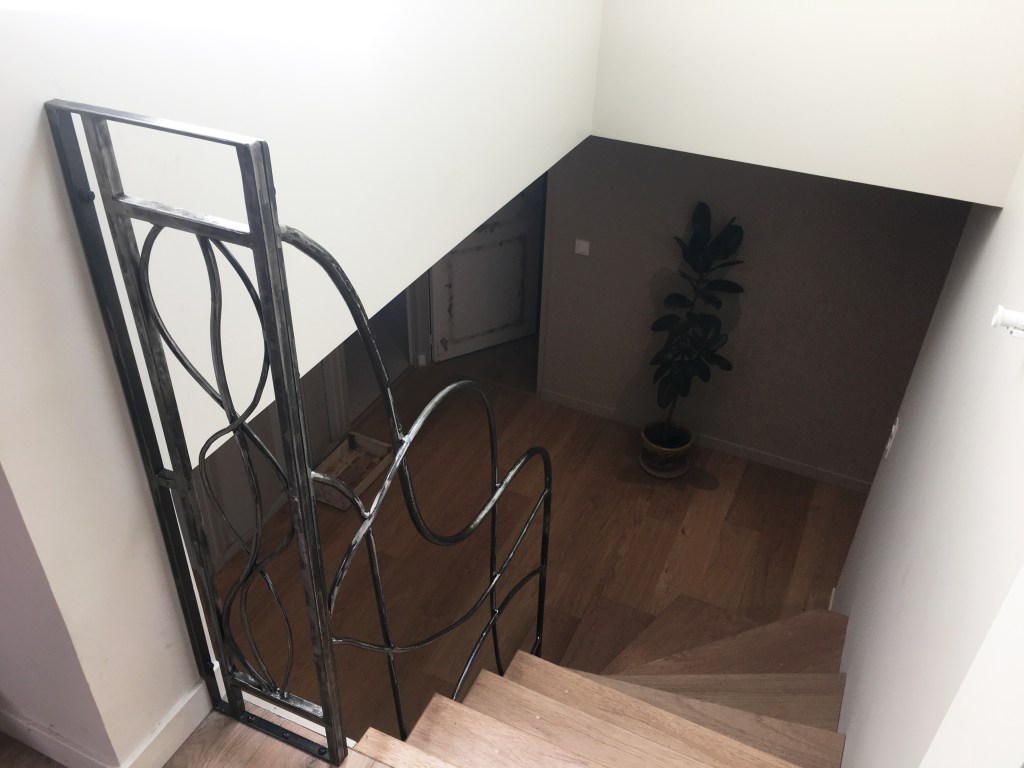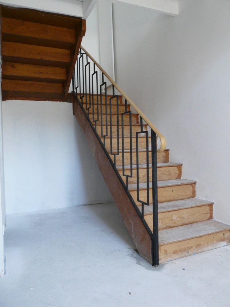 Un ensemble, garde-corps, main courante, balustrade de fenêtre, qui s’intègre dans la rénovation de cette ancienne maison en pierre. Les pièces ont été posées sans finition, qui sera réalisée par le client.