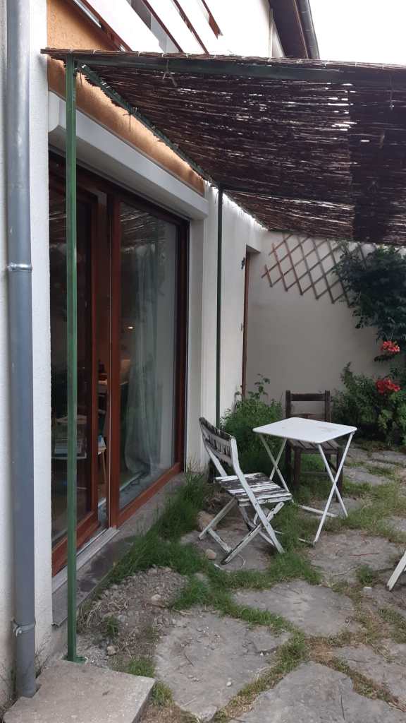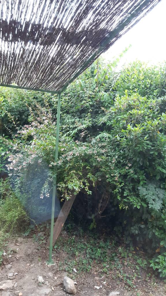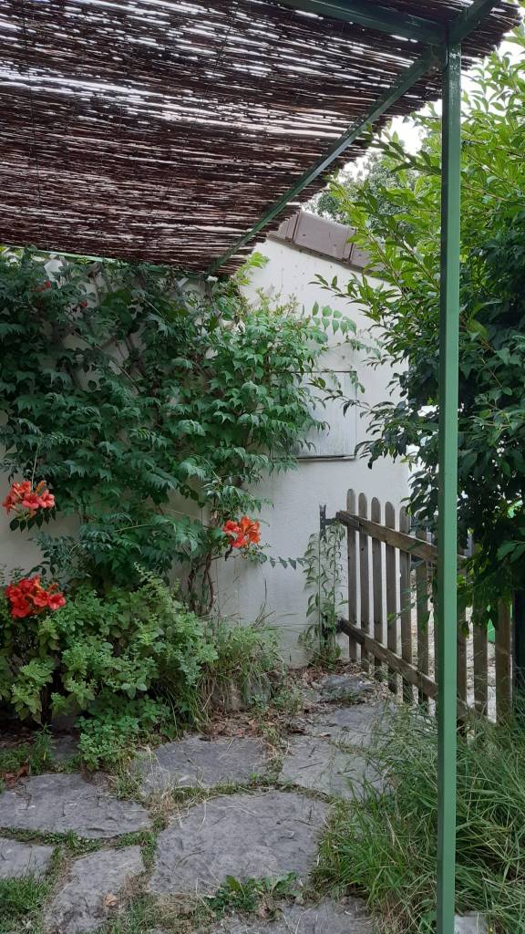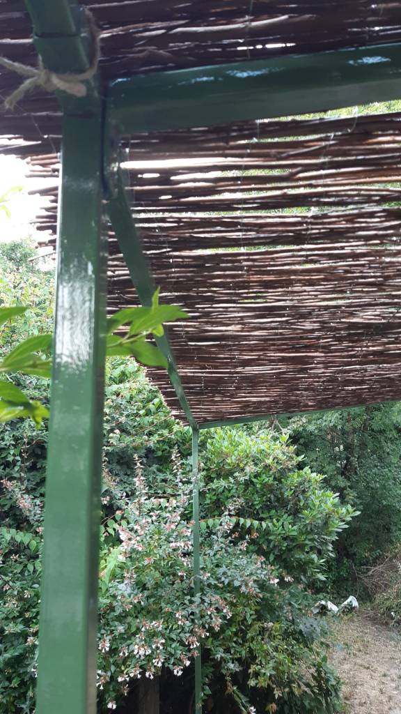 Un peu plus loin, dans le jardin, sa petite soeur (5m x 5m), est prête à accueillir kiwi, vigne, glycine et autres plantes grimpantes pour ombrager le barbecue et le salon de lecture estival