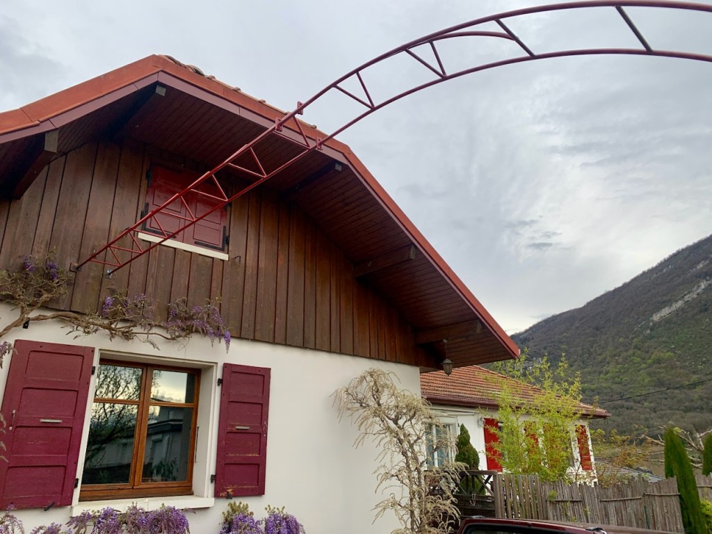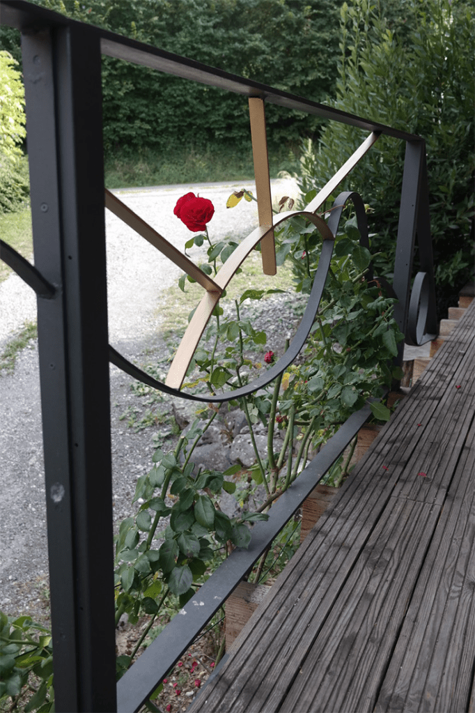 Un ensemble de rambardes extérieures et appuis de fenêtre pour habiller cette maison de campagne. Les lignes courbes étonnent dans cet environnement traditionnel, tout en épousant les formes du paysage environnant