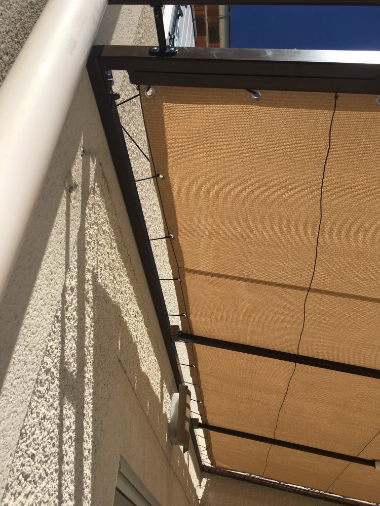 Un ensemble rambarde et rampe d’escalier à l’ancienne, pour compléter une installation de pergola sur une terrasse. Tout simple, efficace
