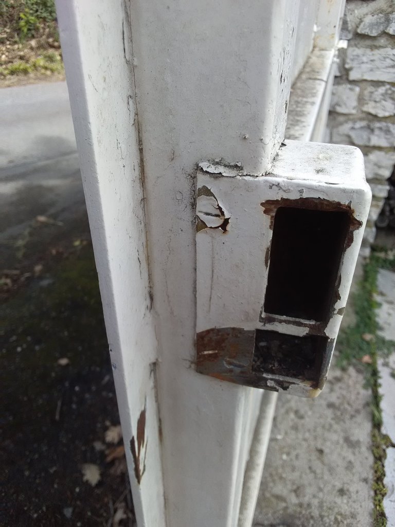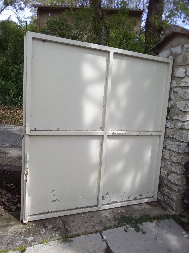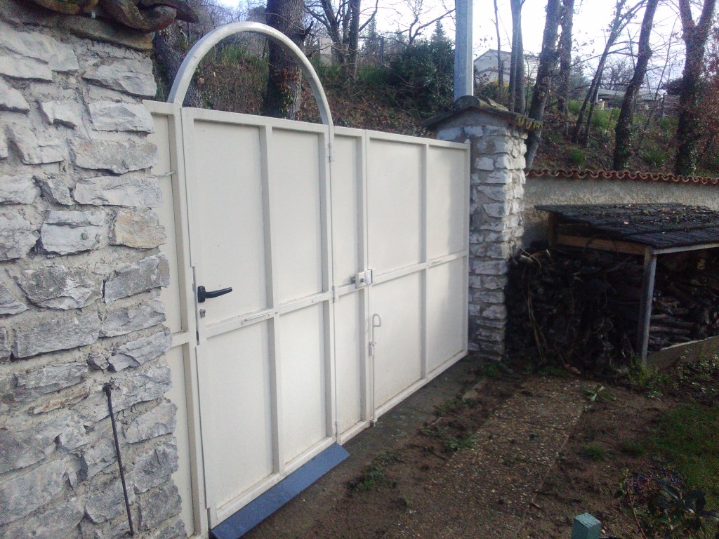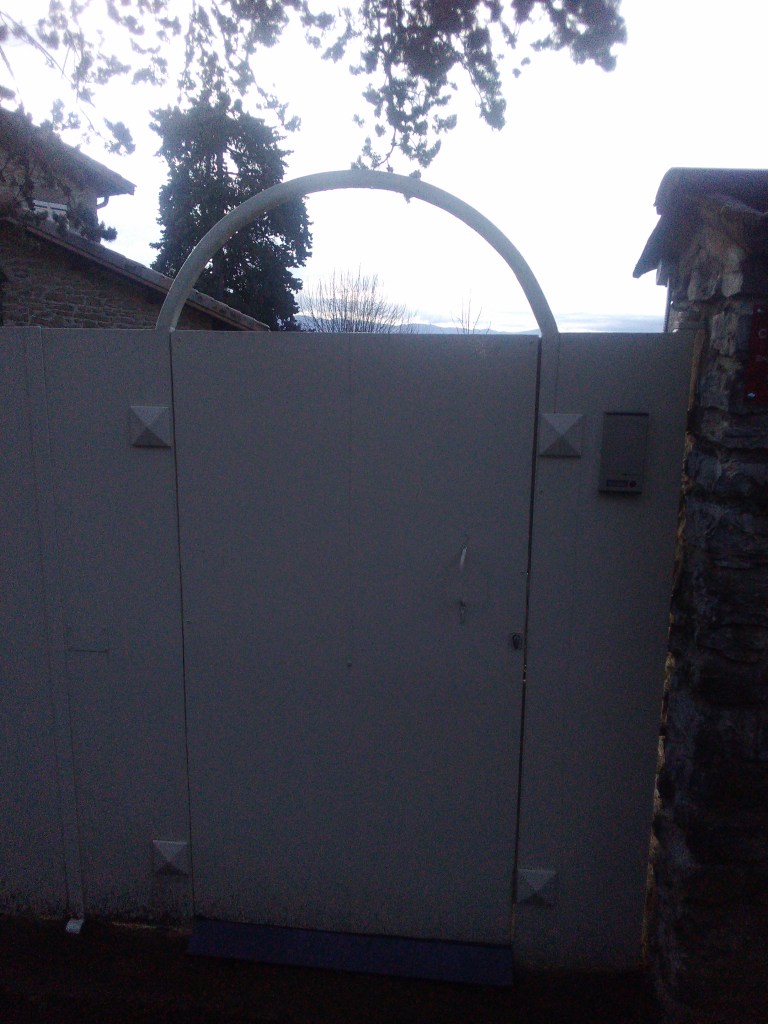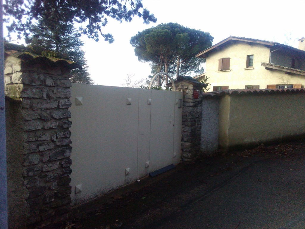 Un exemple de rénovation de portail pour y insérer une porte et permettre un second accès à la maison, avec installation d’interphone avec commande d’ouverture à distance. Photos de l’avant et de l’après.