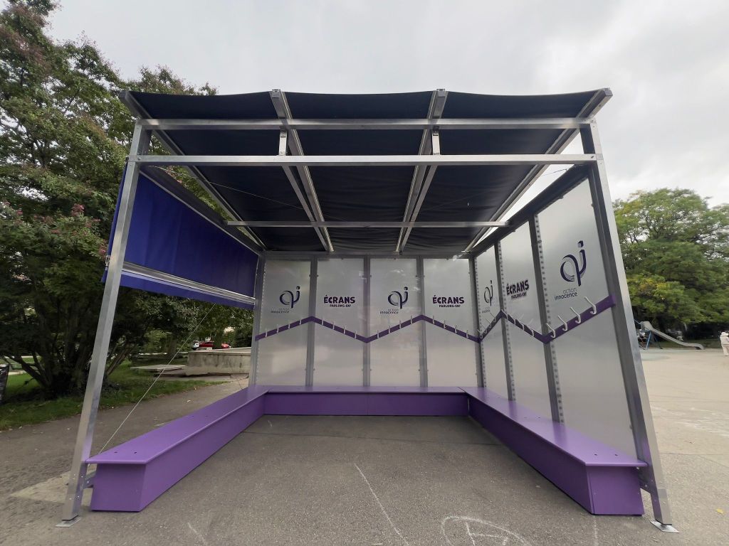 Structure aluminium type abribus, pour une exposition itinérante (page ferronnerie)