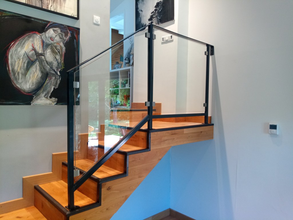 Rampe d’escalier simple et discrète, visuellement légère (page ferronnerie)